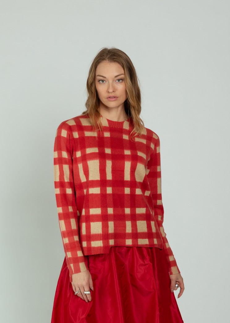 Antipast Coral Wool Cashmere Check Pullover
