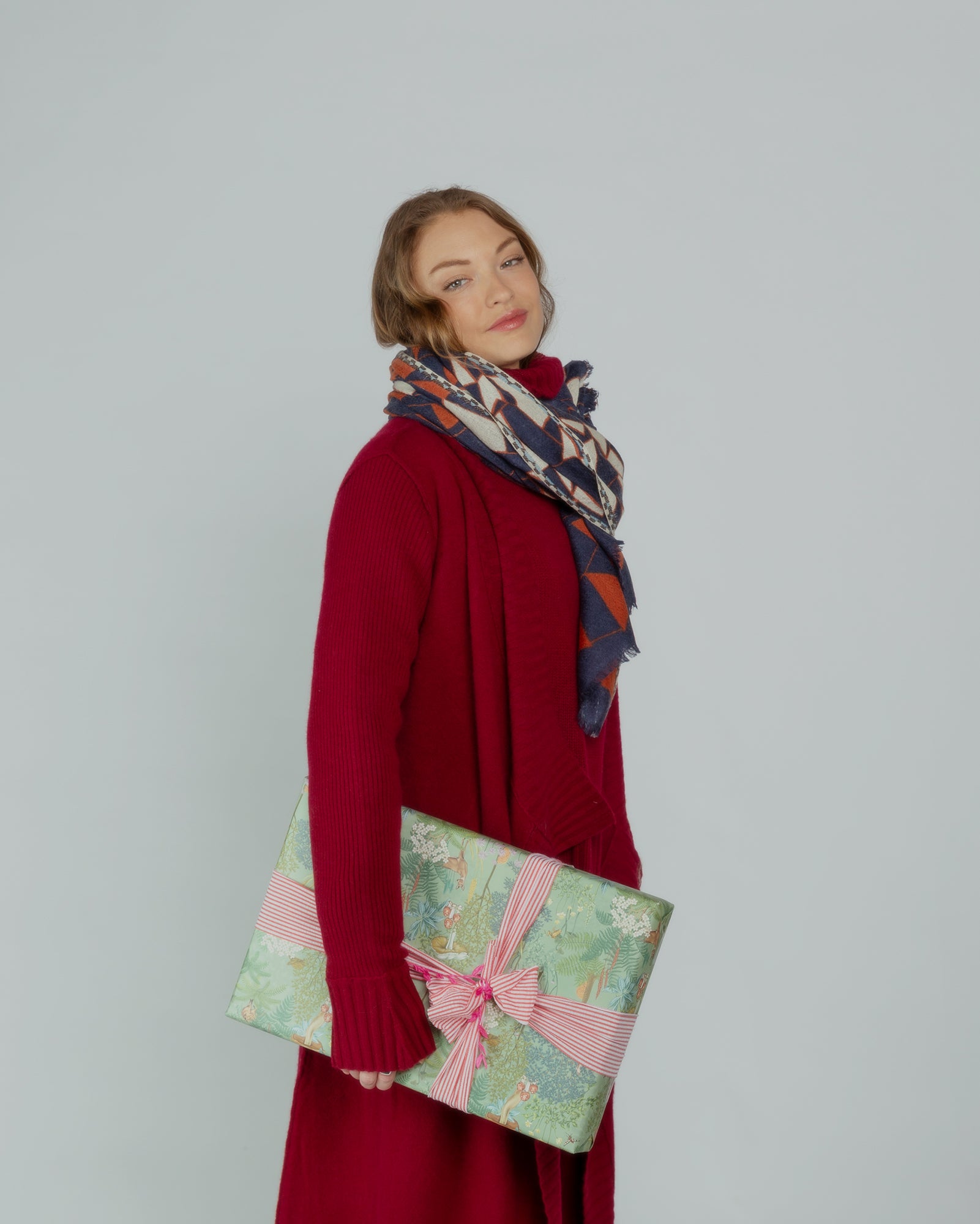 Epice Green/Red Mix Check Wool Scarf