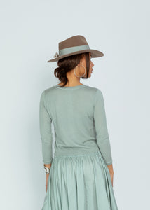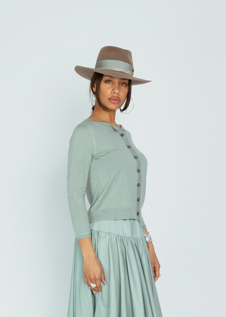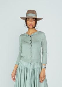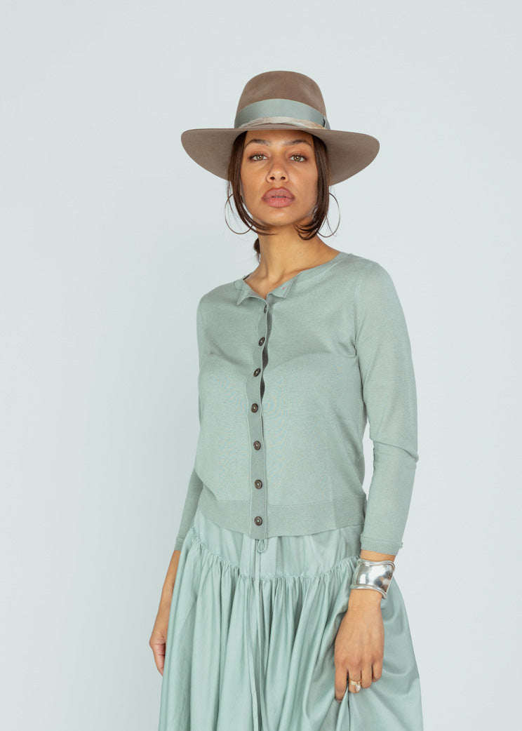 Brazeau Tricot's Tissue Jackie Cardigan is a lightweight cashmere cardigan with a crewneck, button front and long sleeves.
