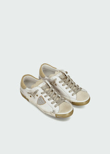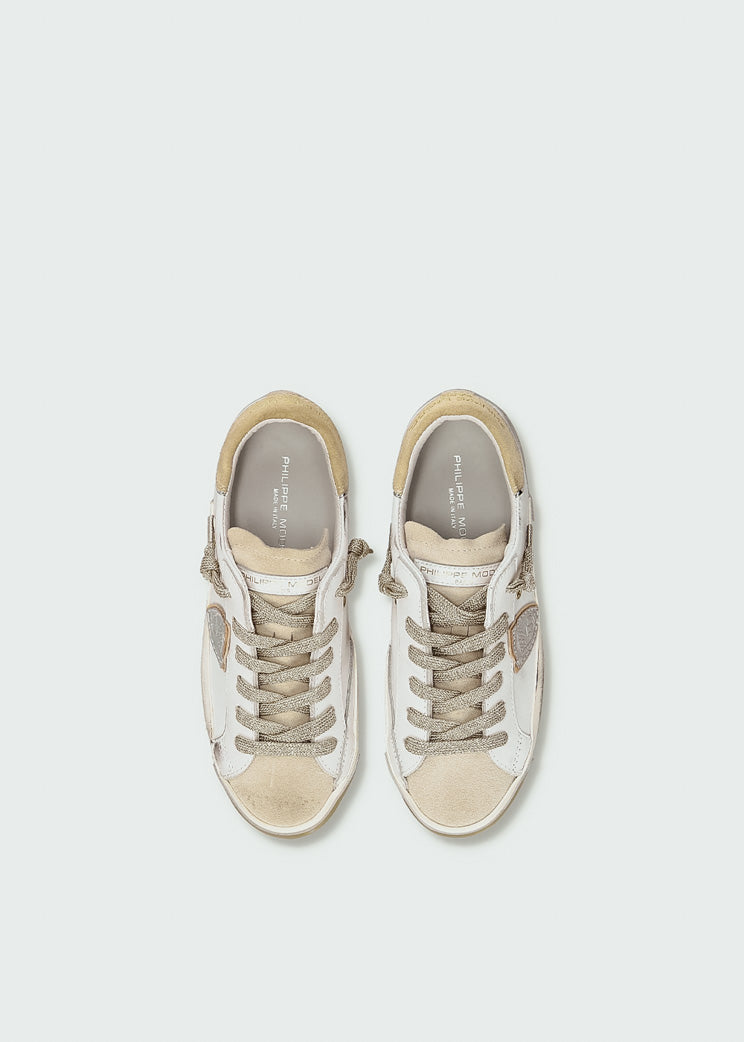 Philippe Model's PRSX Tennis Sneaker is crafted from soft leather and features touches of suede, worn out finishes and the brands signature emblem. Removable footbed
