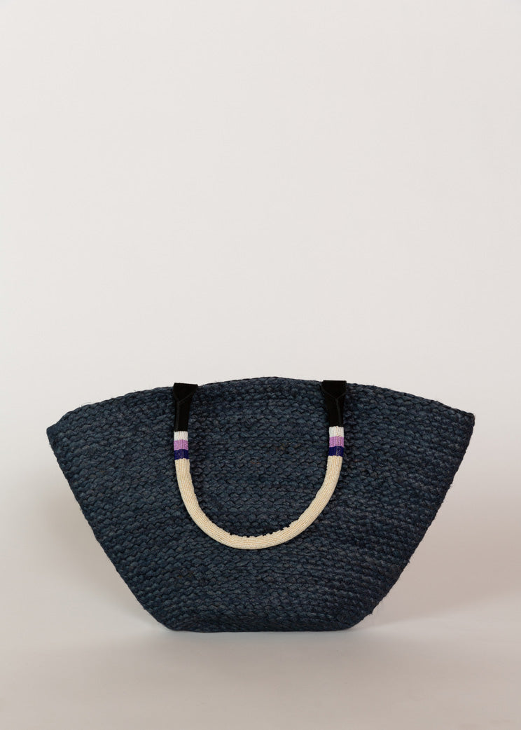 Rue De La Lune's Maman Macrame Bag is a hand beaded, open top macrame tote.
